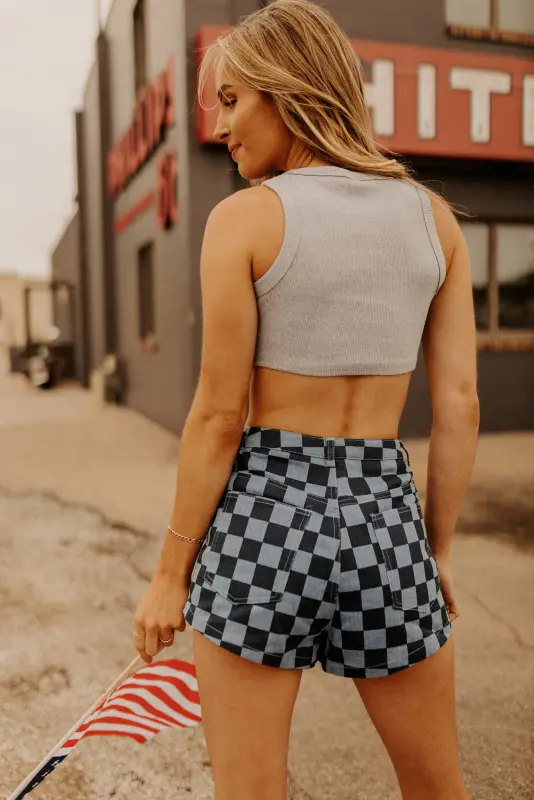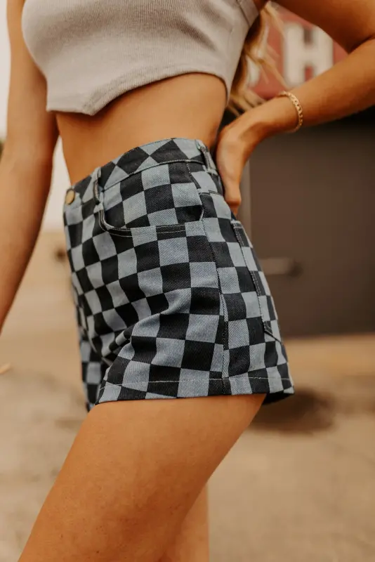 Our Blue Checkered Denim Shorts are the cutest shorts we’ve ever seen! There is a button and zipper closure and there are pockets on the front and back. These would look cute with a simple basic top!