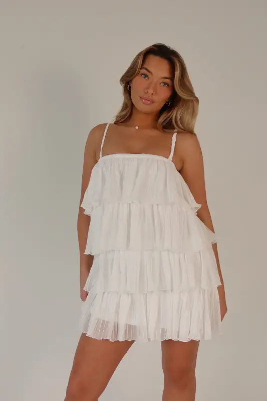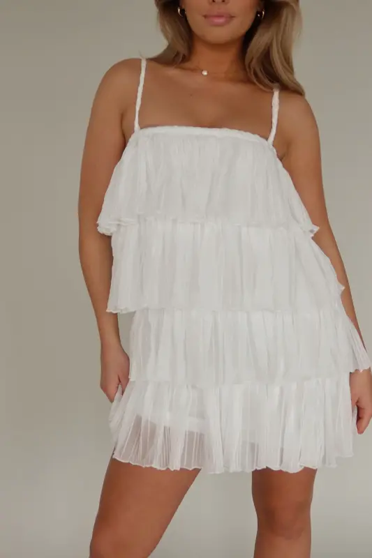 Discover the charm of our Molly Layered Mini Dress, crafted from textured chiffon layers that exude elegance and sophistication. Boasting braided shoulder straps that gracefully cross over the square neckline, this dress offers a perfect blend of style and comfort. With its flowy tiered body, this dress ensures a flattering silhouette while staying true to size. Elevate your wardrobe with this timeless piece, perfect for any occasion where you want to make a statement with effortless grace.